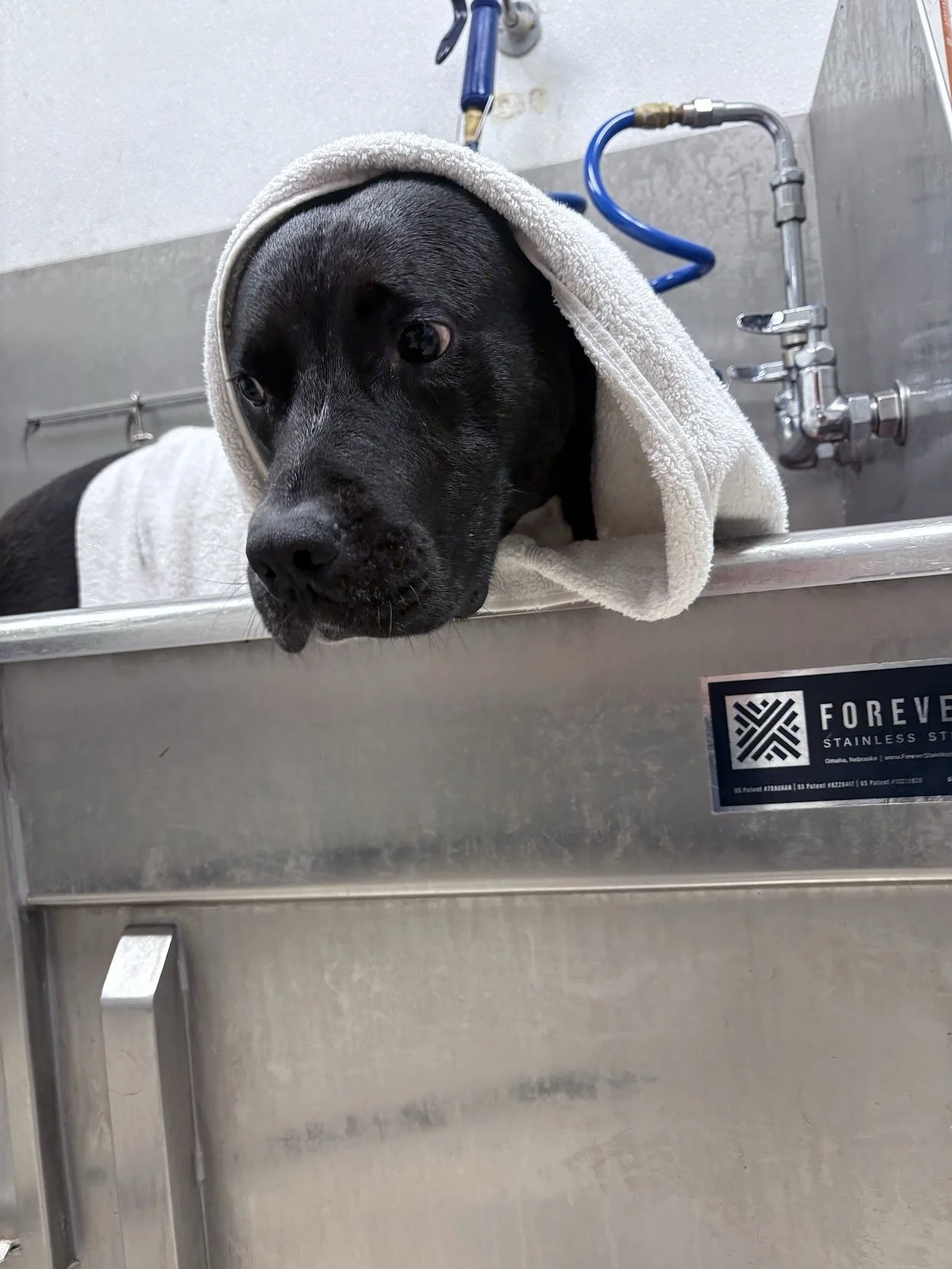We use gentle handling, positive reinforcement, and a patient pace to help each dog relax throughout the bath. Our team understands canine behavior and works with dogs of all temperaments, including those who may be nervous or sensitive during grooming.